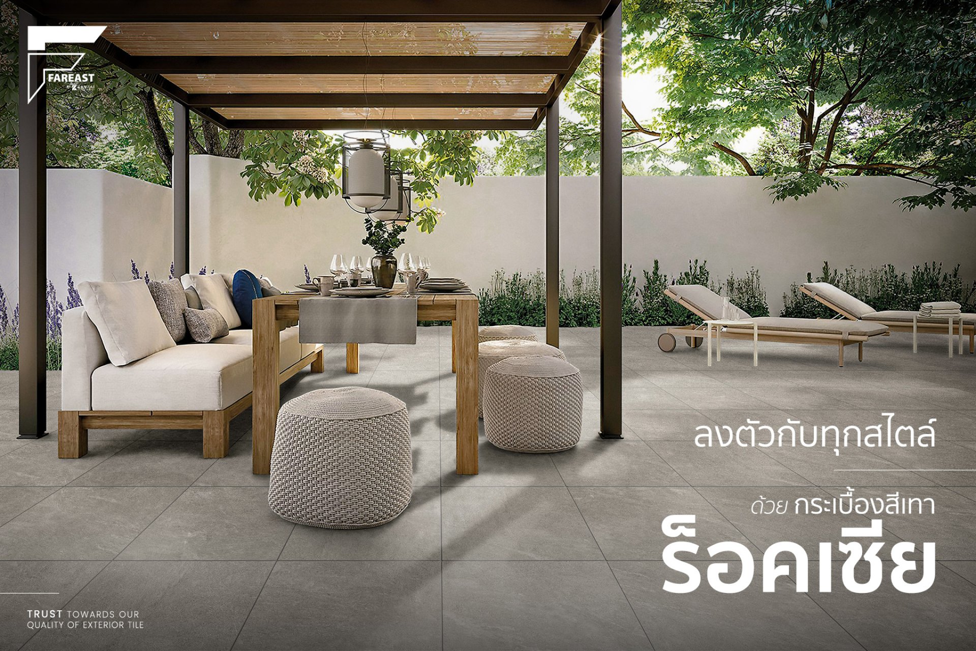 กระเบื้องร็อคเซียจาก Fareast โดดเด่นด้วยลายหินและโทนสีที่ลงตัวกับทุกสไตล์การตกแต่ง